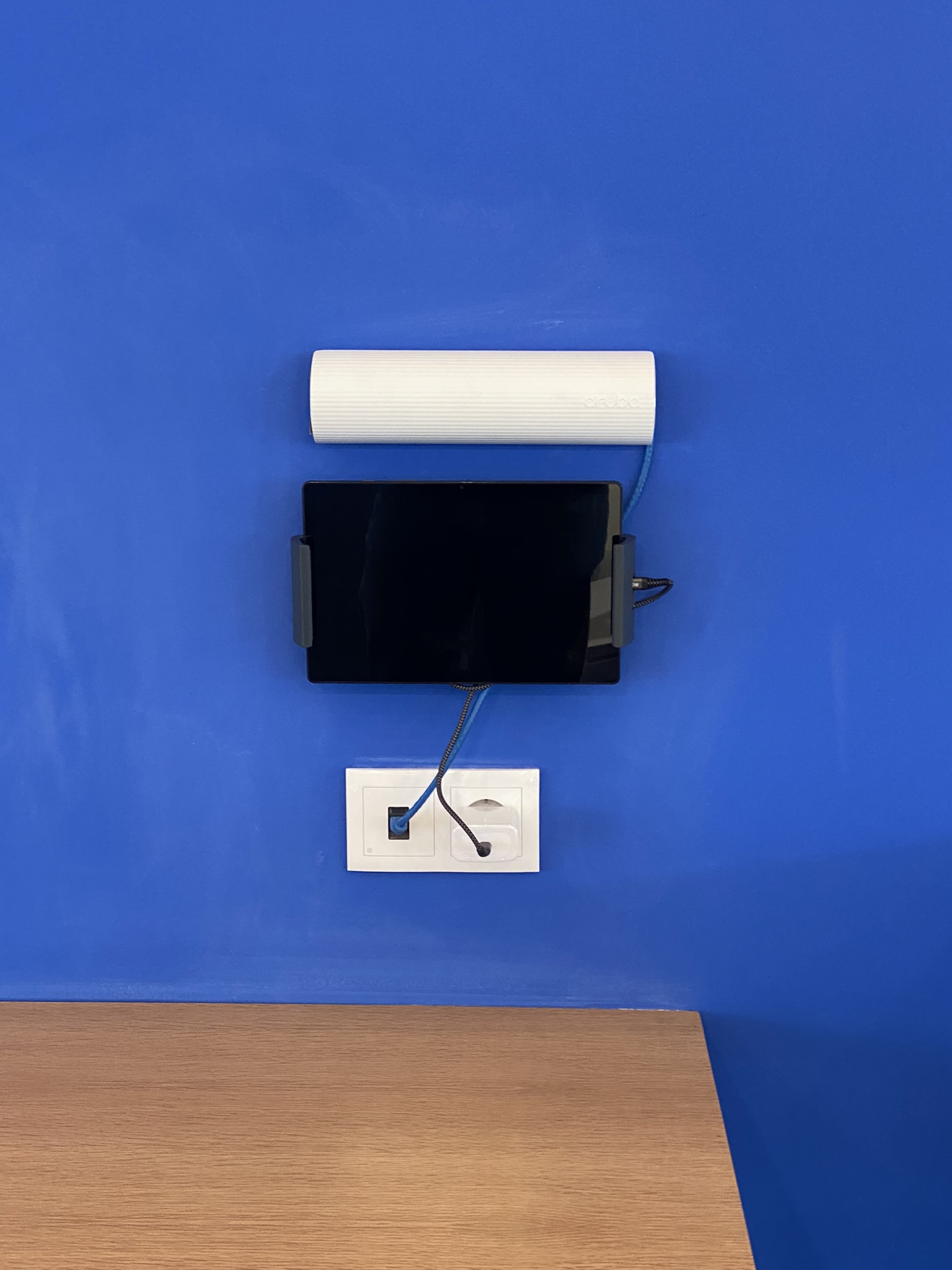 Controlled via Android tablet - located by the main printer.